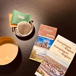 Gastenkamers bieden een eetgedeelte, samen met een bureau voor het comfort van de gasten. Voor uw comfort vindt u een waterkoker, een koelkast en keukengerei.